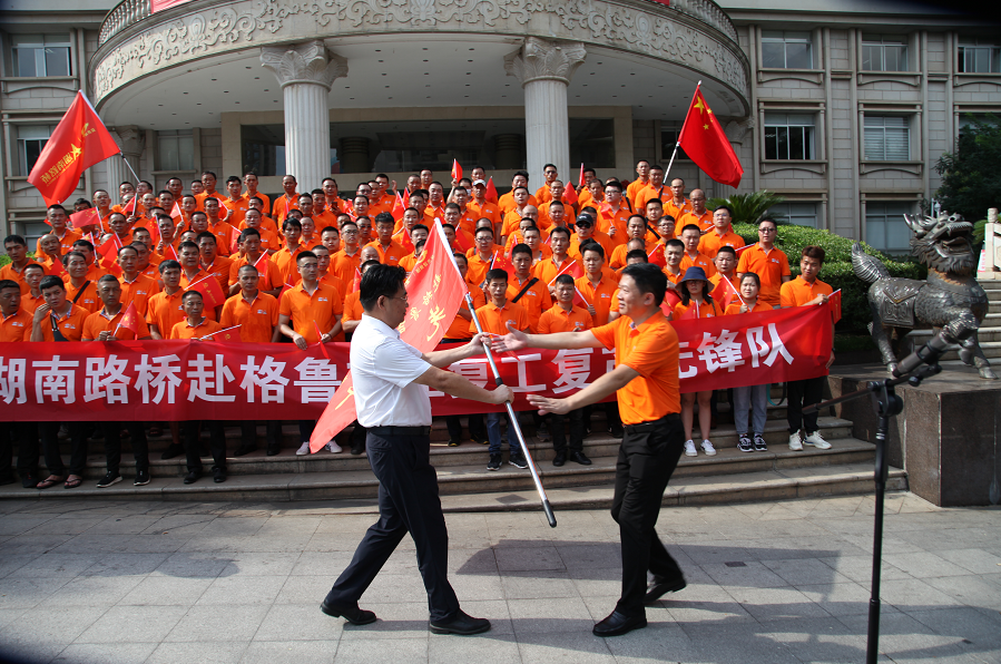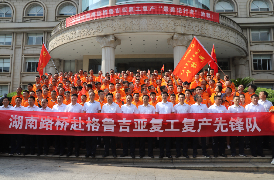 “走出国门,你代表的就是中国”。出征仪式上,湖南交水建集团党委书记、董事长方联民向赴格团组领队授“赴格鲁吉亚复工复产先锋队”队旗。省国资委党委委员、副主任张美诚,湖南交水建集团和乐发ll集团相关向导对团组成员举行慰问,赠予防疫爱心礼包,欢送这群为国际工程履约、奔赴外洋的“最美逆行者”。